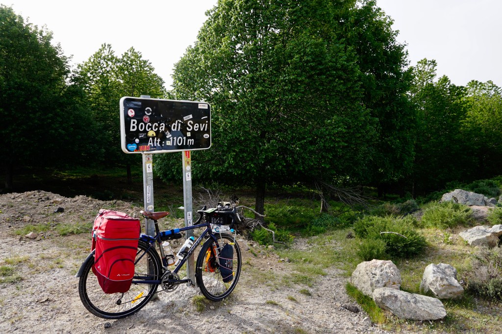 I’m not at the top yet, but my feeling at Bocca di Sevi (mt 1.101) is close to enthusiasm. Few hairpin turns downhill, and here we are, climbing again.