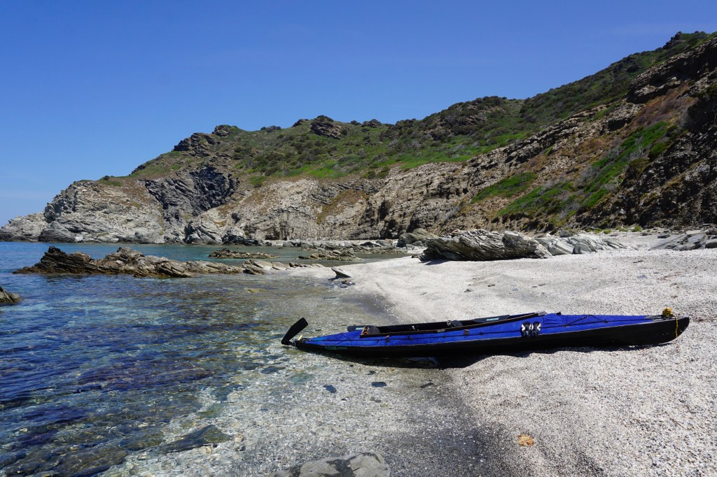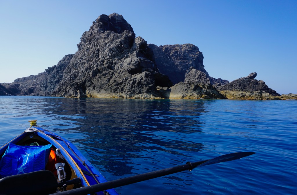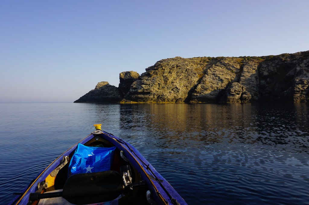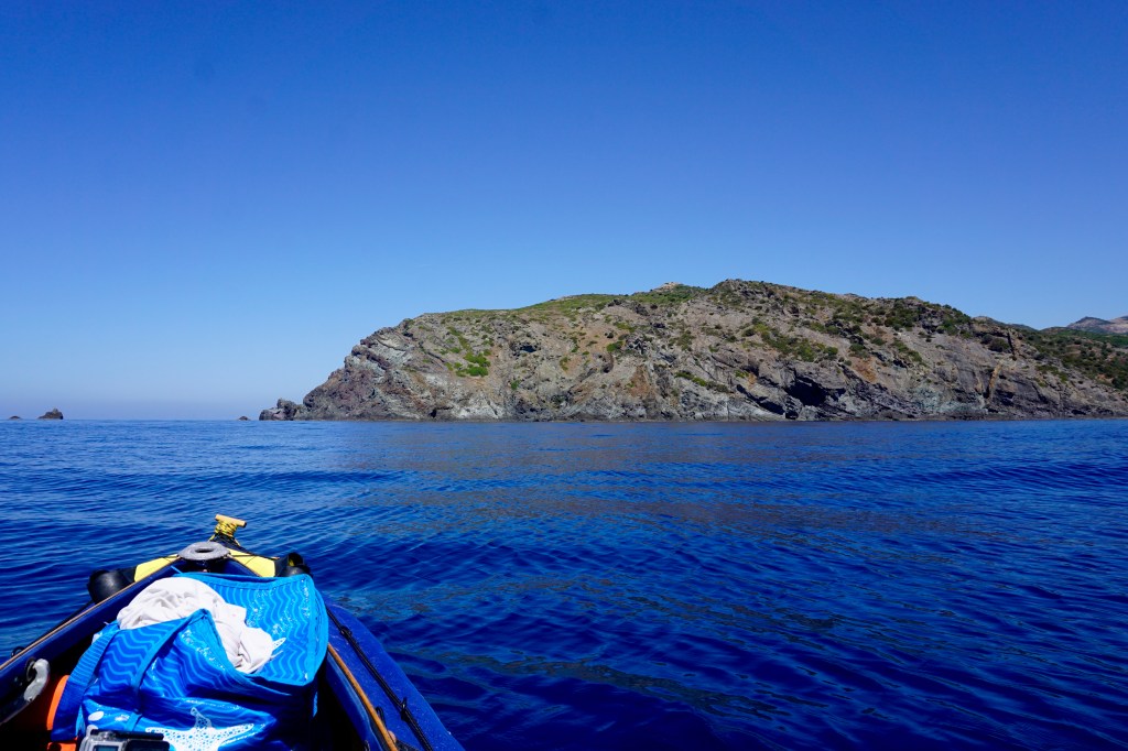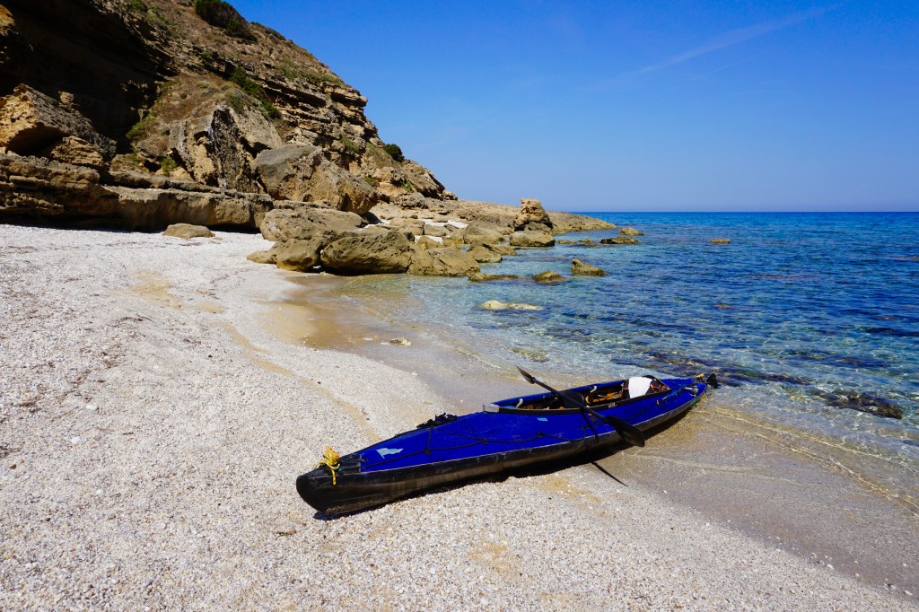 Quando fai una vita scandita dagli elementi, quando il tuo giorno finisce al tuffo del sole in mare, allora anche quello successivo inizia allo stesso modo con il primo chiarore dell’aurora. La prima notte è trascorsa nella tranquillità più assoluta, cullato dal lento respiro marino che alita sul bagnasciuga smuovendo e rotolando la ghiaia di quarzo della spiaggia. Smontare la tenda e impacchettare tutto di nuovo, concedendosi anche qualche minuto per un colazione che mi fornisca energia da pagaiare, è un’ouverture che mi porta via circa un’ora. Meno è quasi impossibile, per fare tutto con ordine e poter ritrovare facilmente ogni cosa al successivo bivacco o durante le brevi pause. È la natura del viaggio in solitaria e a contatto diretto con gli elementi che porta ad essere metodici e organizzati. Il prezzo che si paga per non esserlo è troppo caro. Alle 6:20 son già in acqua diretto verso l’Isola dei Porri, che sfiorerò passando nello stretto canale che la separa dal resto della terraferma.
