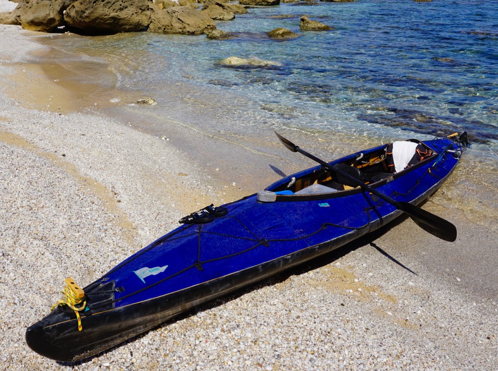 Non sono ancora così stanco da dovermi fermare per forza, ma mi attira l’idea di rilassarmi in questa spiaggia meravigliosa e godermi le ultime ore di luce nella sua solitudine assoluta. Tolgo da Aerius, il mio kayak Klepper, tutto quello di cui ho bisogno, accuratamente stivato nelle borse stagne. Monto la mia tenda da bivacco per prepararmi alla notte, che sarà l’apoteosi della tranquillità: raggiungere questa spiaggia via terra è lungo e difficile, non corro certo il rischio di doverla dividere con nessuno.