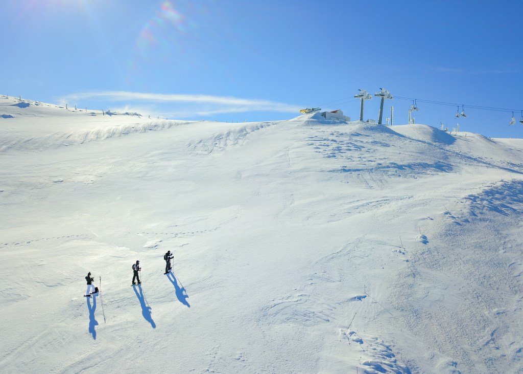 Non trovo parole migliori di quelle di Paolo Cognetti, scrittore e amante della montagna, per raccontare in breve come si fa una pista da sci: “…si prende un versante della montagna che viene disboscato se è un bosco, spietrato se è una pietraia, prosciugato se è un acquitrino; i torrenti vengono derivati o incanalati, le rocce fatte saltare, i buchi riempiti di terra; e si va avanti a scavare, estirpare e spianare finché quel versante della montagna assomiglia soltanto a uno scivolo dritto e senza ostacoli. Poi lo scivolo va innevato, perché è ormai impossibile affrontare l’inverno senza neve artificiale: a monte della pista viene scavato un enorme bacino, riempito con l’acqua dei torrenti d’alta quota e con quella dei fiumi pompata dal fondovalle, e lungo l’intero pendio vengono posate condutture elettriche e idrauliche, per alimentare i cannoni piantati a bordo pista ogni cento metri. Intanto decine di blocchi di cemento vengono interrati; nei blocchi conficcati piloni e tra un pilone e l’altro tirati cavi d’acciaio; all’inizio e alla fine del cavo costruite stazioni di partenza e d’arrivo dotate di motori: questa è la funivia. Mancano solo i bar e i ristoranti lungo il percorso, e una strada per servire tutto quanto. I camion e le ruspe e i fuoristrada.”