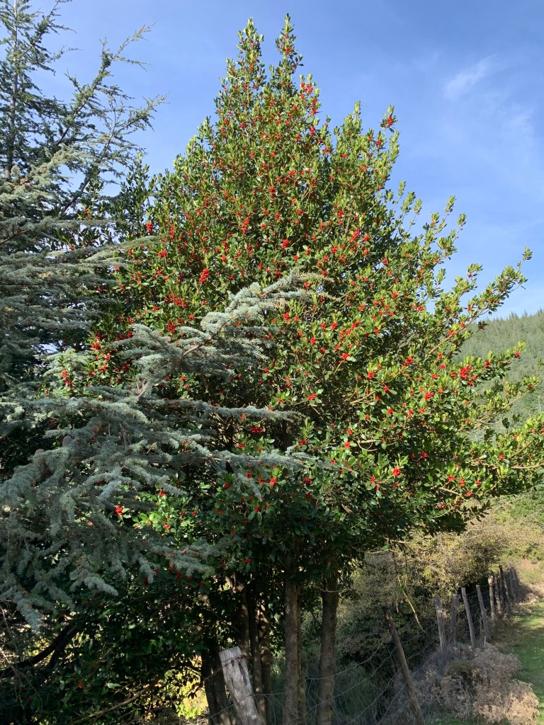 Pratesi, a proposito della foresta di agrifogli a monte della strada fra Santu Lussurgiu e Macomer: “L’agrifoglio: d’autunno, allorché le bacche diventano rosse, inizia il vandalico saccheggio dei fiorai che apre drammatici vuoti in questa formazione residua, certo una delle più importanti rimaste nell’Isola.” Ricordo molto bene come casa a natale si colorasse di quella artefatta atmosfera natalizia. A farne le spese abeti, tassi, muschio, agrifogli e tante altre specie vegetali ahiloro! deliberatamente associate alla nascita di un bambino avvenuta in Palestina 2mila anni prima o giù di lì.